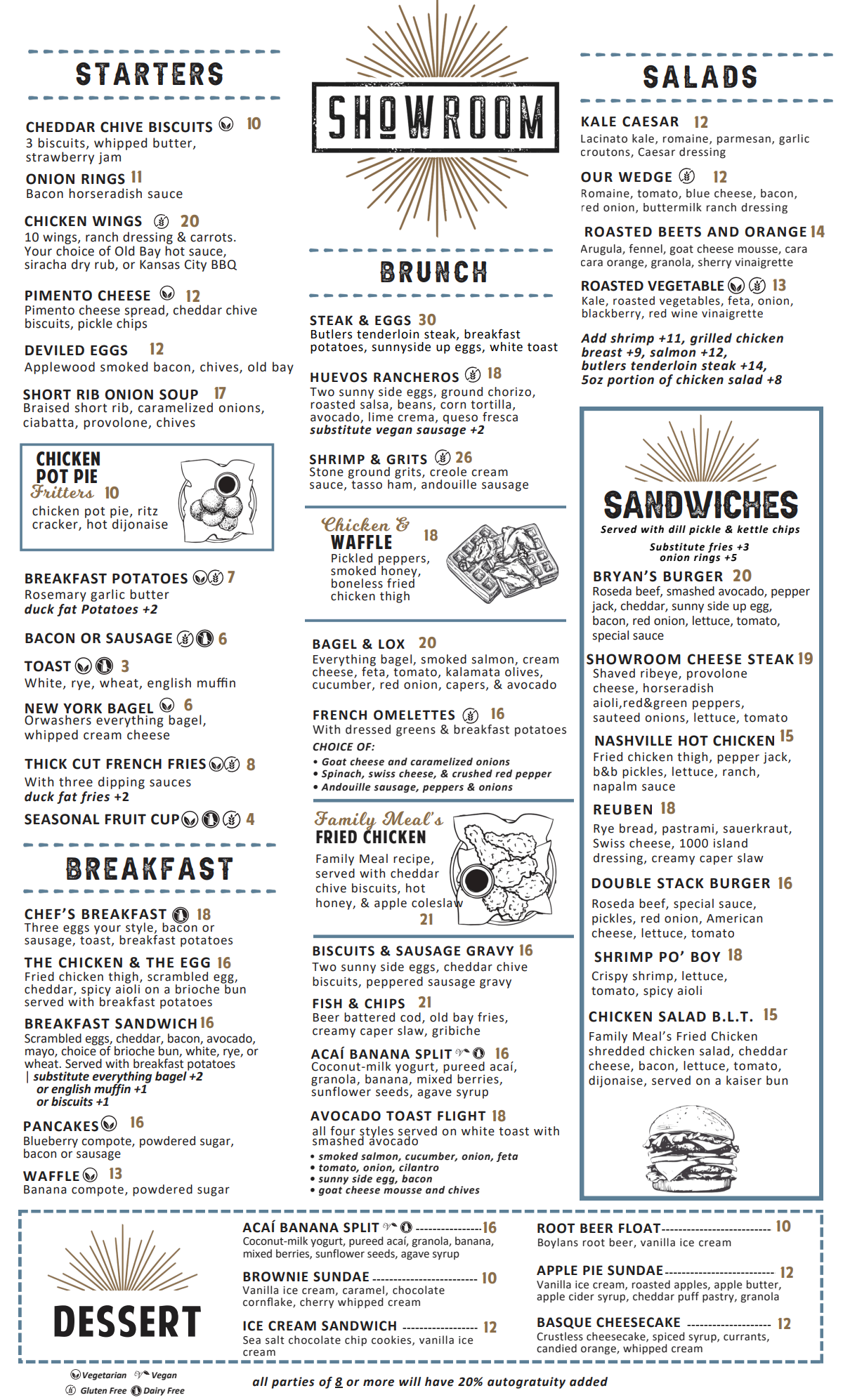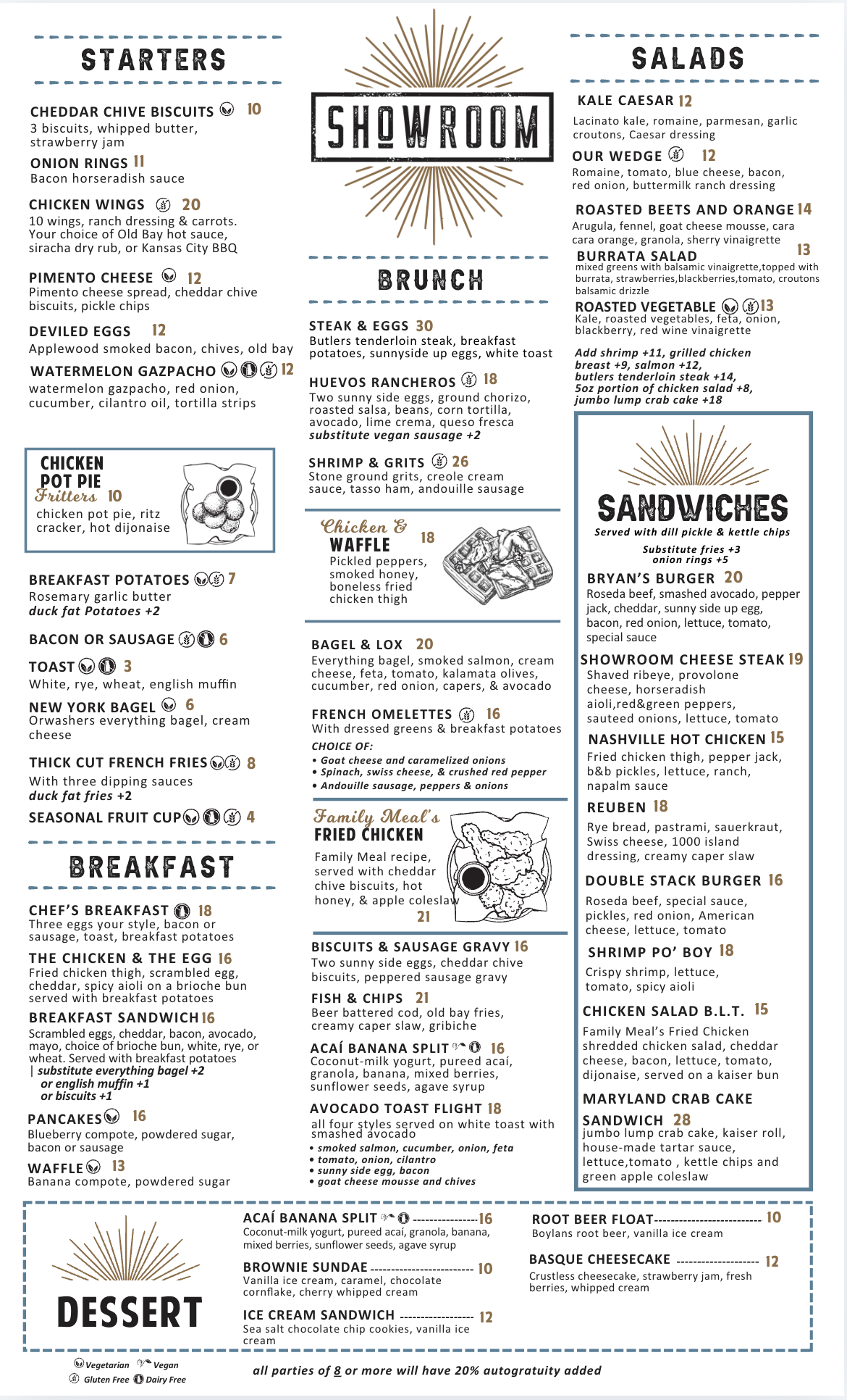 A modern American casual restaurant, Showroom is known for its modern-take on mid-Atlantic comfort foods. Showroom is open for Breakfast, Lunch, & Dinner 7 days a week.